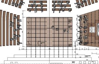 ■ Die Bühne wird mit Elementen 200x100 cm so gebaut, dass die bestehenden Heizungsrohre überbaut werden (obere Kante 30 cm ab Boden). Es sind 35 Bühnenelemente notwendig.